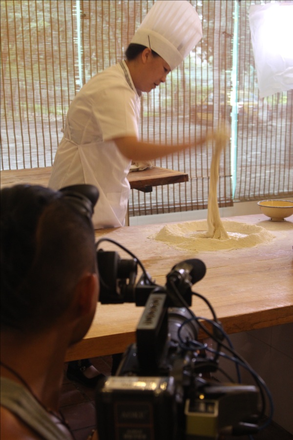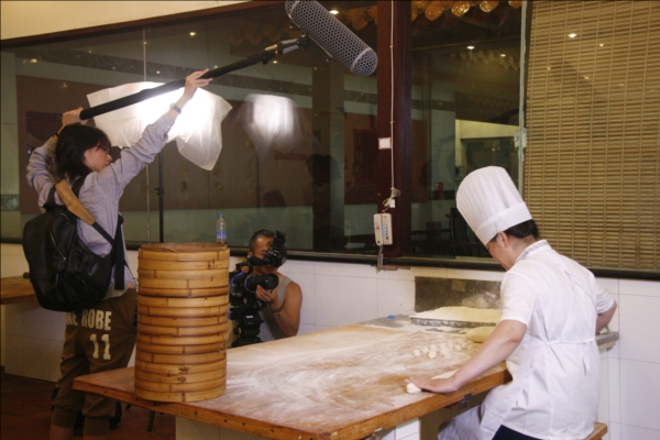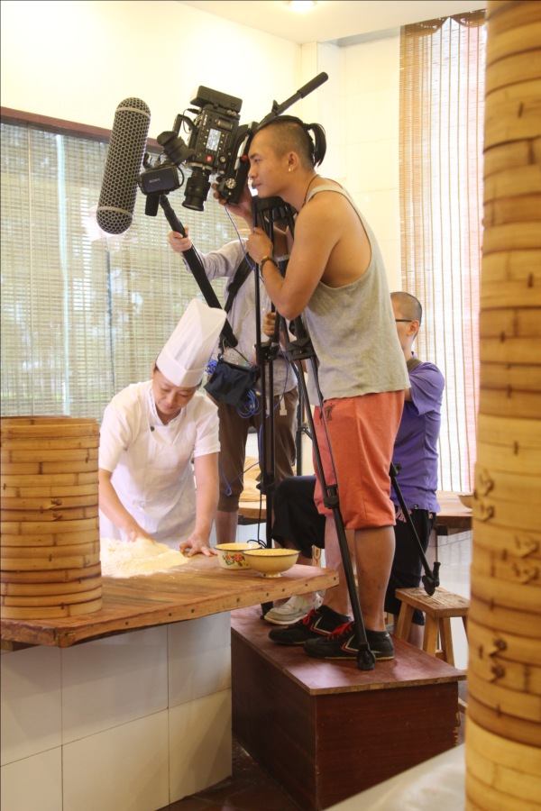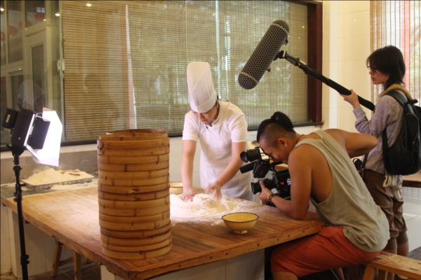 《舌尖上的中国2》剧组在第一楼拍摄高级包子师马瑞制作“小笼灌汤包子”拍摄现场。