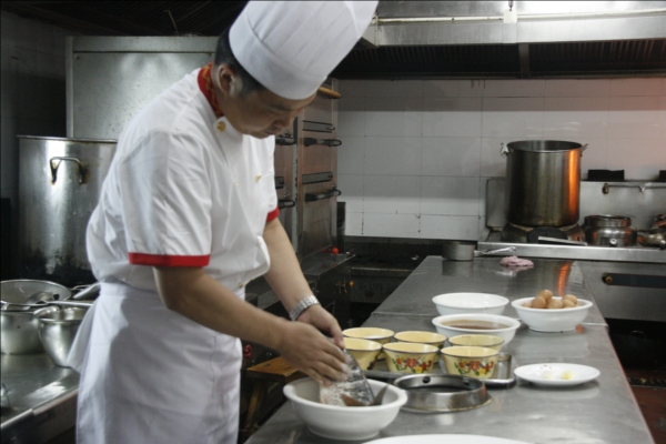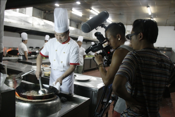 《舌尖上的中国2》剧组在第一楼拍摄高级烹调技师王海波制作传统豫菜“鲤鱼焙面”拍摄现场